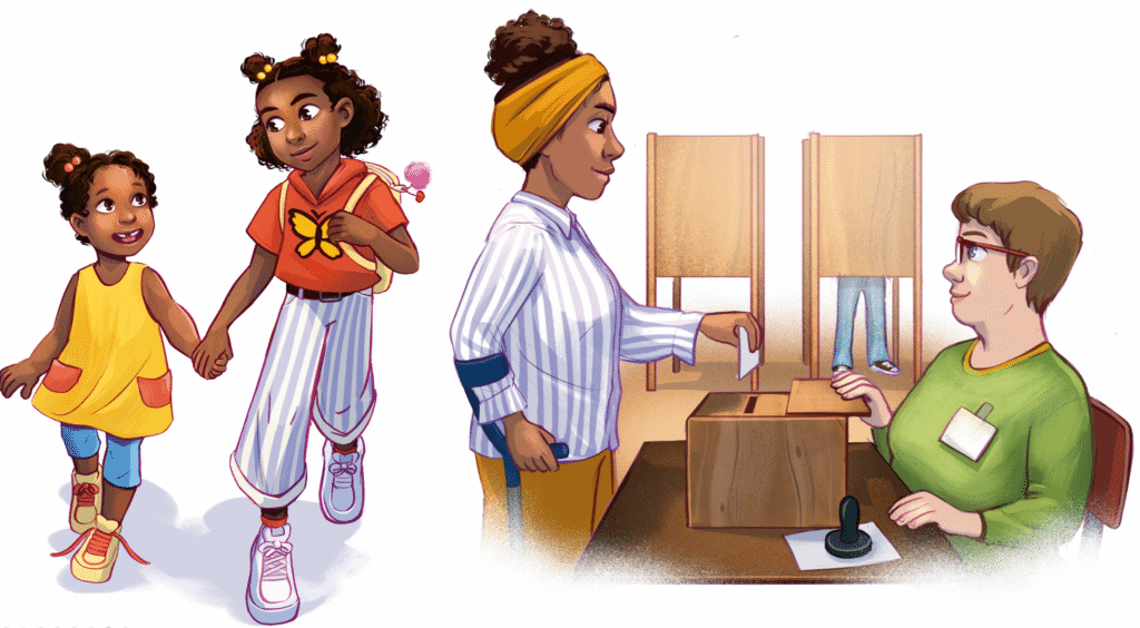 Lapsi oppii parhaiten näkemällä. Näytä, miten äänestäminen toimii ja miksi se on tärkeää. Kerro, että ääni on tapa vaikuttaa yhteisiin asioihin – myös niihin, jotka koskevat koulua, ympäristöä tai terveyttä. Alakoululaisen kanssa voi jo katsoa puolueiden vaalimainoksia ja täyttää yhdessä vaalikoneen kysymyksiä keskustellen.
