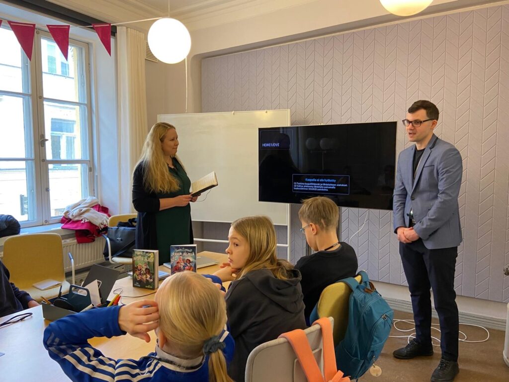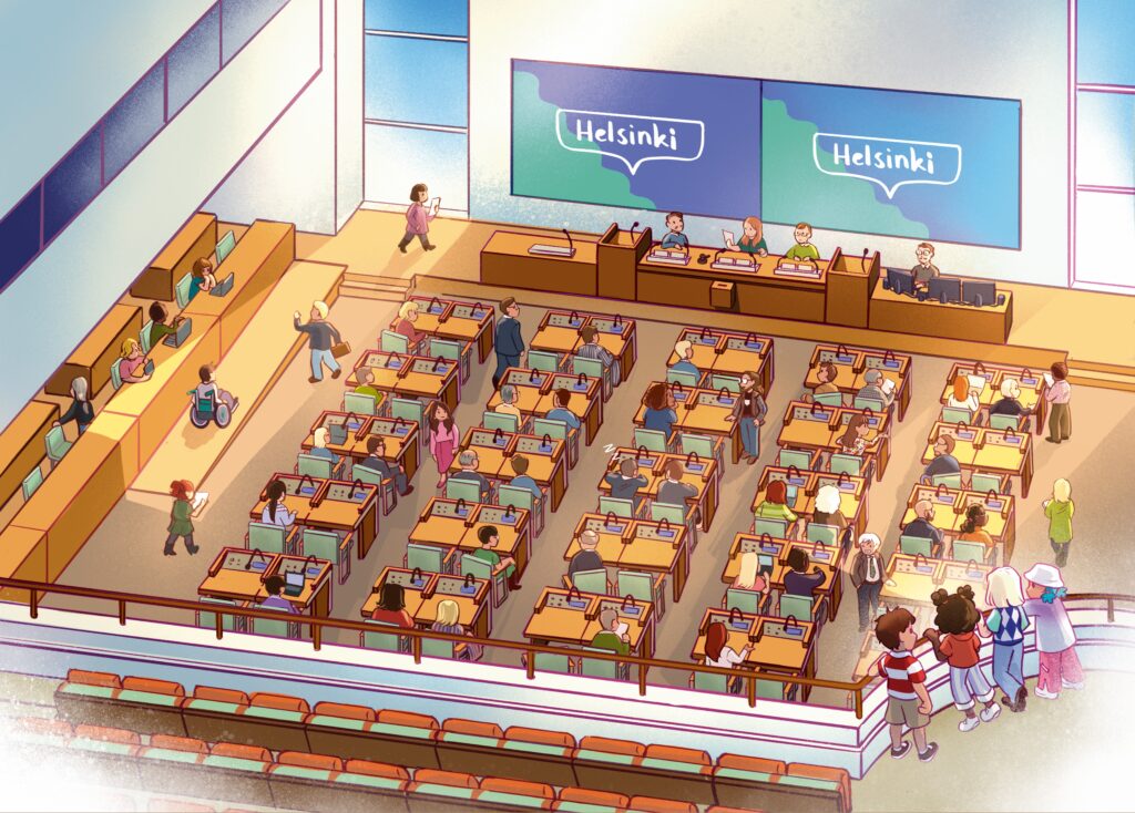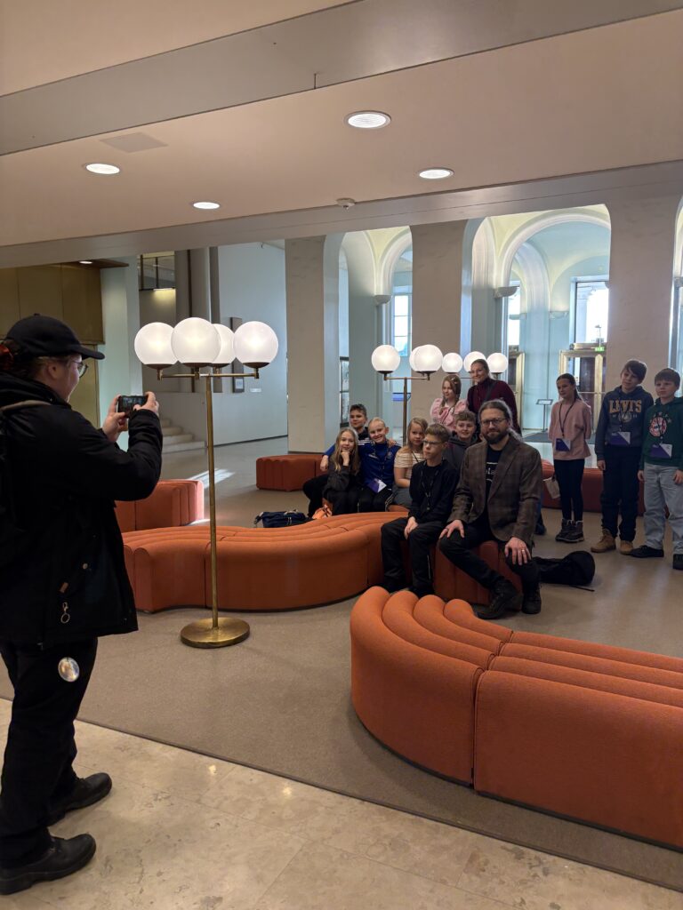 Nyt päätin käydä lapsiryhmän kanssa Helsingin kaupunginvaltuustossa tapaamassa valtuutettuja. Tässä tapauksessa luonnollinen valinta oli Otso Kivekäs. Hän kertoi lapsille työstään valtuutettuna, vaalikampanjoimisesta ja tekemästään aloitteesta.